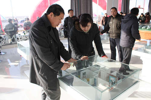 客戶在售樓現場看沙盤模型